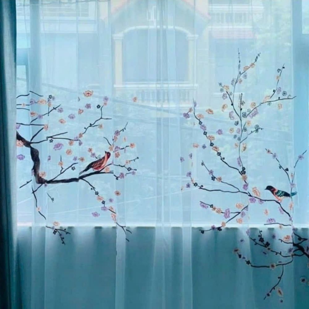 Rèm Thêu Tay Nghệ Thuật Trên Nền Voan Trắng – Sự Kết Hợp Hoàn Hảo Giữa Nghệ Thuật Và Phong Thủy