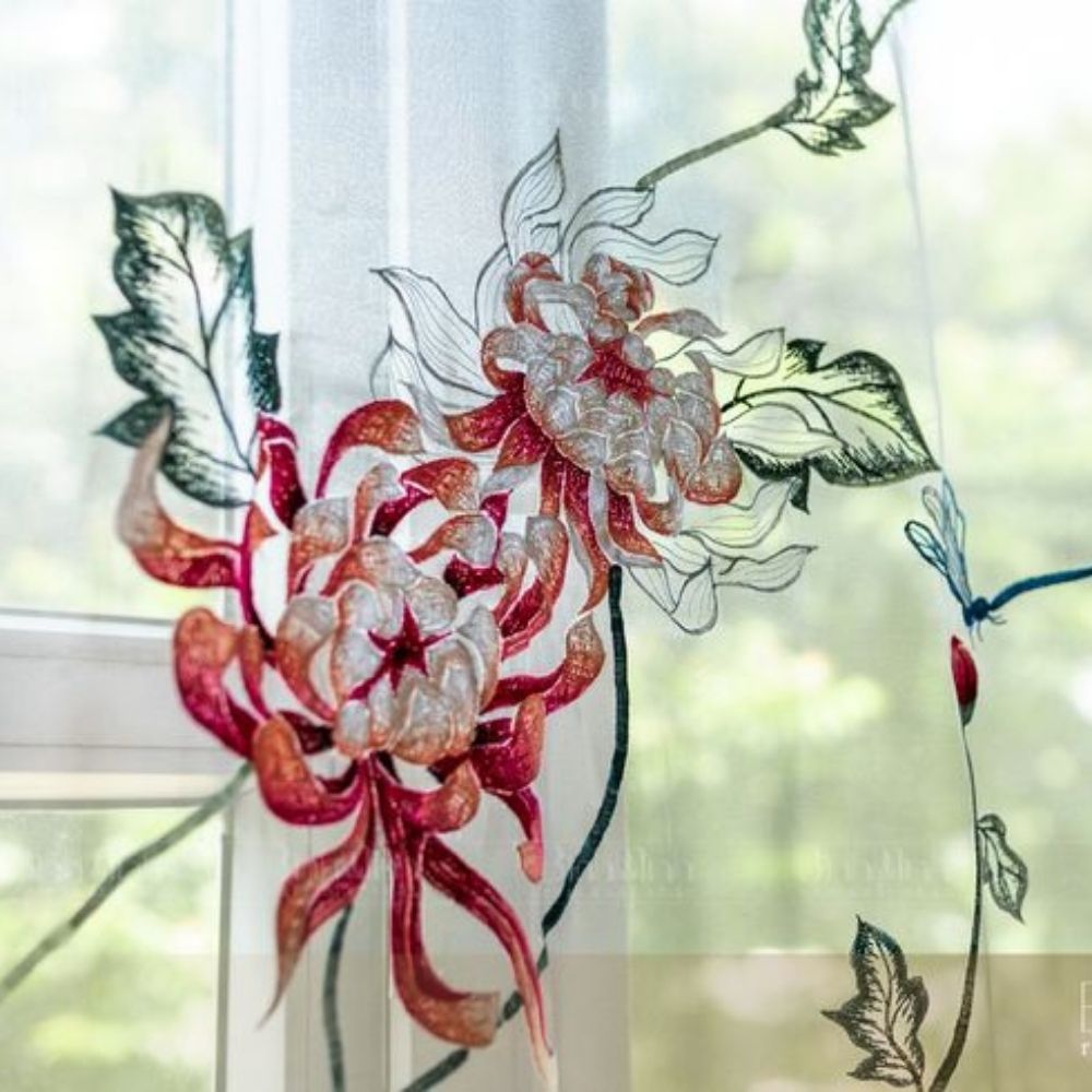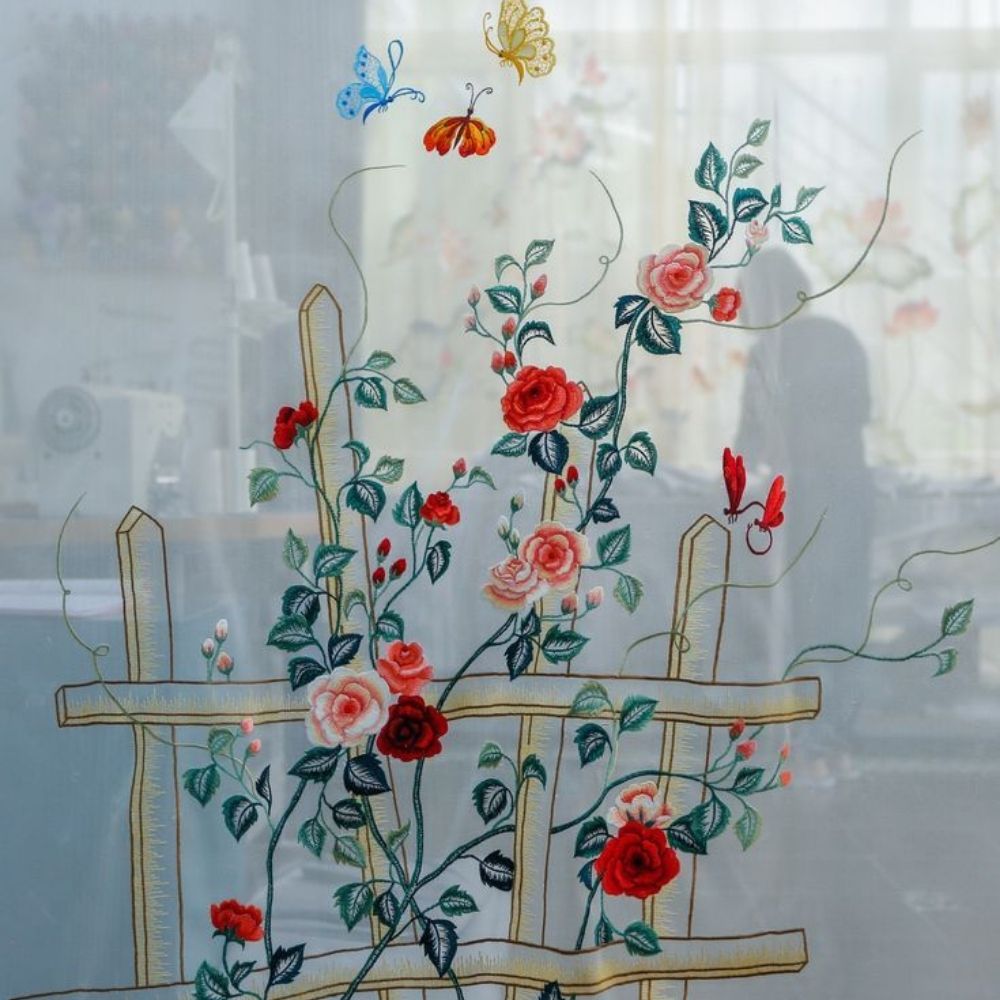 Rèm Thêu Tay Nghệ Thuật Trên Nền Voan Trắng – Sự Kết Hợp Hoàn Hảo Giữa Nghệ Thuật Và Phong Thủy